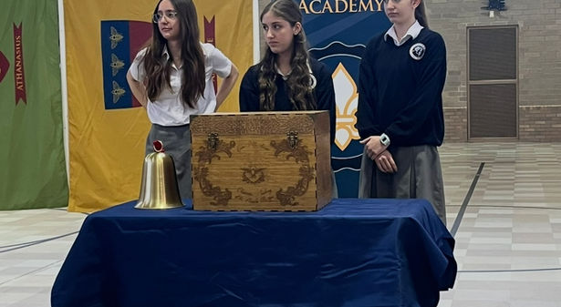 Each of the four house prefects came forward to read the names of the 57 Martyrs of La Florida. As each name was read, a special decorated prayer card was placed into our prayer box. Each prayer card featured the name/identity of each of the 57 martyrs with a special prayer intention on the back.